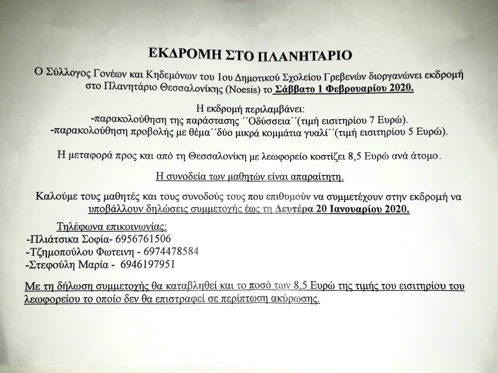 Εκδρομή στο Πλανητάριο! On 14 Ιαν. 2020 By Σύλλογος Γονέων και Κηδεμόνων Κοινοποιήστε: Mοιραστείτε στο Facebook(Ανοίγει σε νέο παράθυρο) Facebook Σχετικά