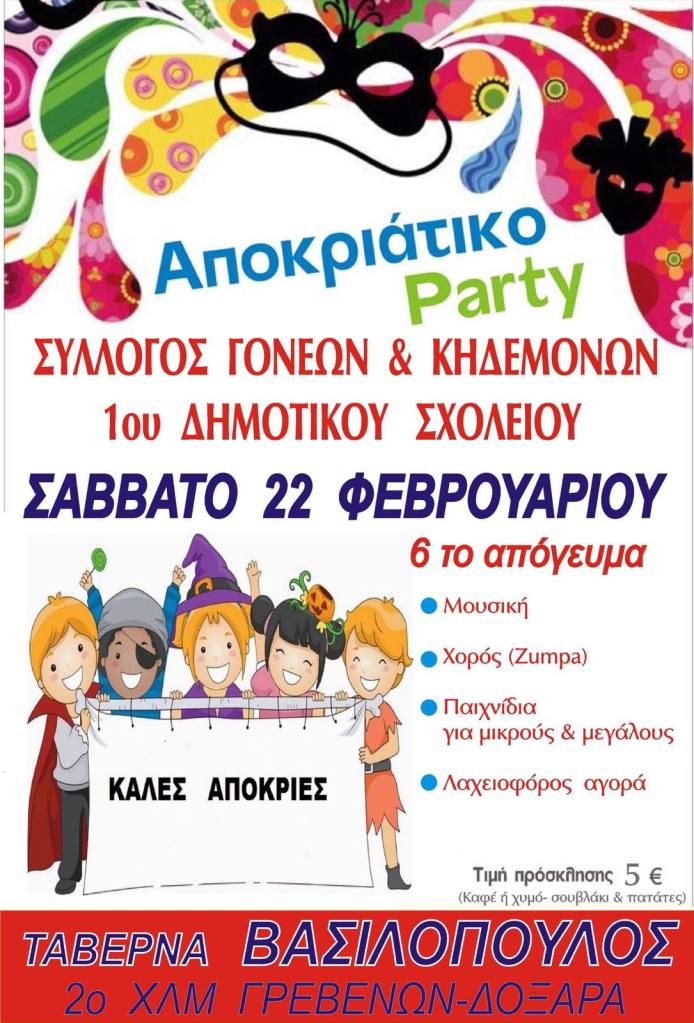 Αποκριάτικο Πάρτυ 2020 – Αφίσα! On 18 Φεβ. 202014 Μαρ. 2020 By Σύλλογος Γονέων και Κηδεμόνων Κοινοποιήστε: Mοιραστείτε στο Facebook(Ανοίγει σε νέο παράθυρο) Facebook Σχετικά