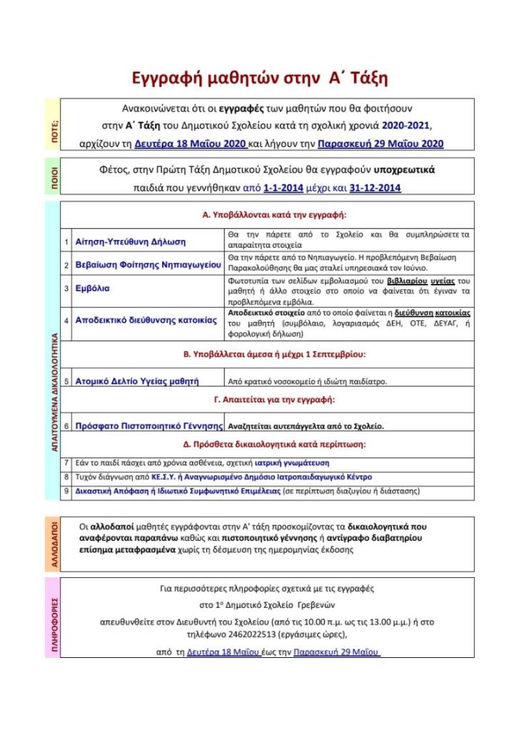 Εγγραφές Α’ Δημοτικού για το σχολικό έτος 2020-2021 On 22 Μάι. 2020 By Σύλλογος Γονέων και Κηδεμόνων Εγγραφές Α’ Δημοτικού 2020-21Λήψη Κοινοποιήστε: Mοιραστείτε στο Facebook(Ανοίγει σε νέο παράθυρο) Facebook Σχετικά