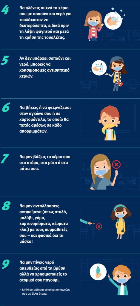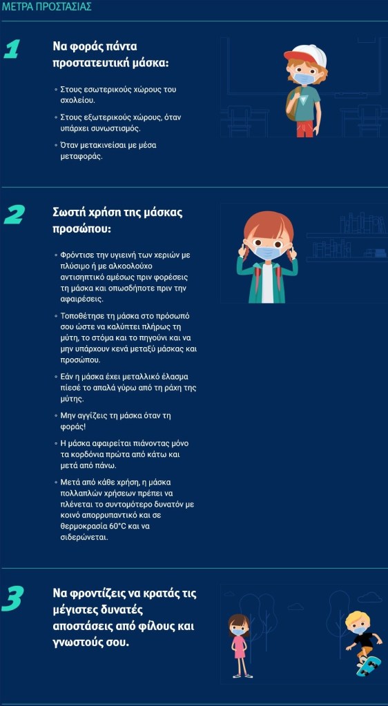 Στις 14 Σεπτεμβρίου ξεκινά μια νέα σχολική χρονιά τελείως διαφορετική από τις προηγούμενες και καλούμαστε όλοι να συμβάλουμε στην τήρηση των μέτρων προφύλαξης από τον ιό.