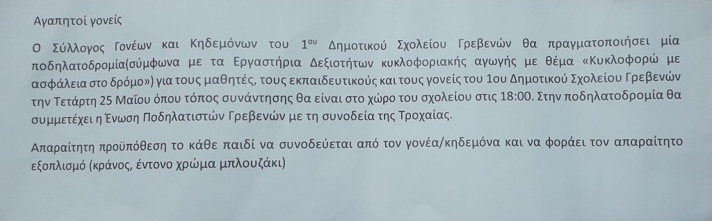 Ποδηλατοβόλτα! On 23 Μάι. 2022 By Σύλλογος Γονέων και Κηδεμόνων Κοινοποιήστε: Mοιραστείτε στο Facebook(Ανοίγει σε νέο παράθυρο) Facebook Σχετικά