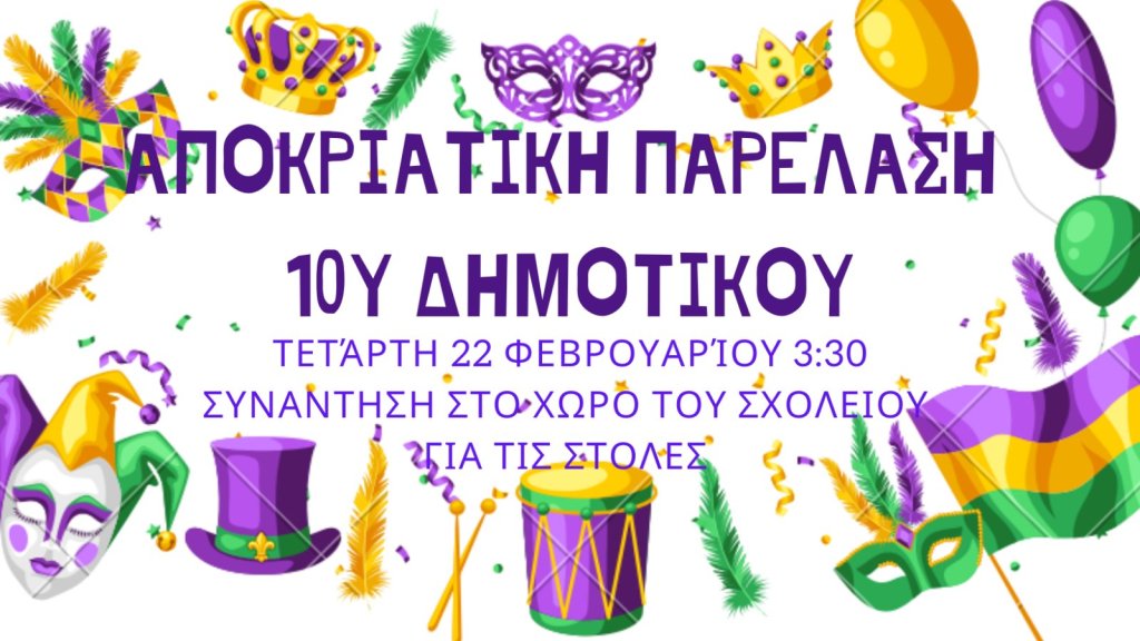 Προετοιμασία για την αποκριάτικη παρέλαση 2023 On 20 Φεβ. 2023 By Σύλλογος Γονέων και Κηδεμόνων Κοινοποιήστε: Mοιραστείτε στο Facebook(Ανοίγει σε νέο παράθυρο) Facebook Σχετικά
